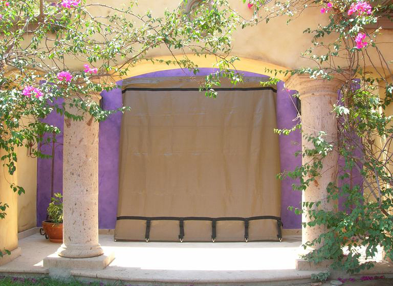 The 500 Series system is a lightweight, easy to install, easy to store, flexible wind abatement screen that prevents glass breakage. The result is a protection system that affords the strongest window protection from hurricane conditions available. Infinite span widths are available and this durable fabric hurricane protection has a significant degree of translucence, which helps prevent that boxed in feeling when the storm protection material is in place outside windows and doors.
